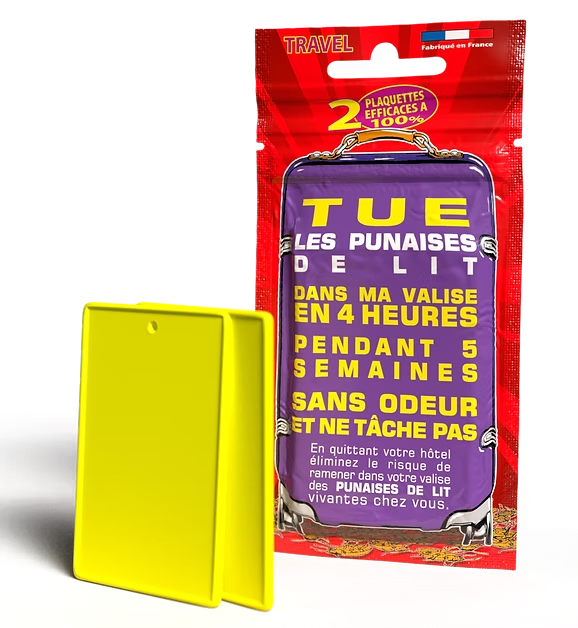 Profitez de votre séjour sans vous soucier des punaises de lit présentes dans la chambre. Le pack contient 2 plaquettes efficaces à 100% qui agissent rapidement en seulement 4 heures et offrent une protection continue pendant 5 semaines.