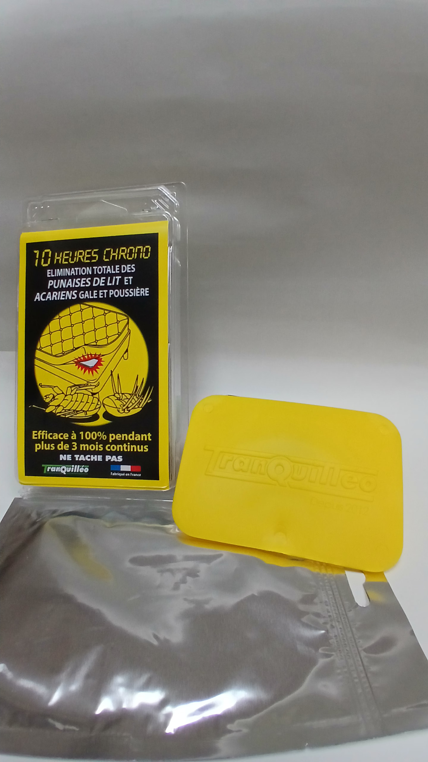 Développée pour éliminer efficacement les punaises de lit et les acariens, sans aérosol ni traitement complexe. Son action biocide repose sur une synergie d'actifs encapsulés dans un support polymère breveté, qui diffuse progressivement.